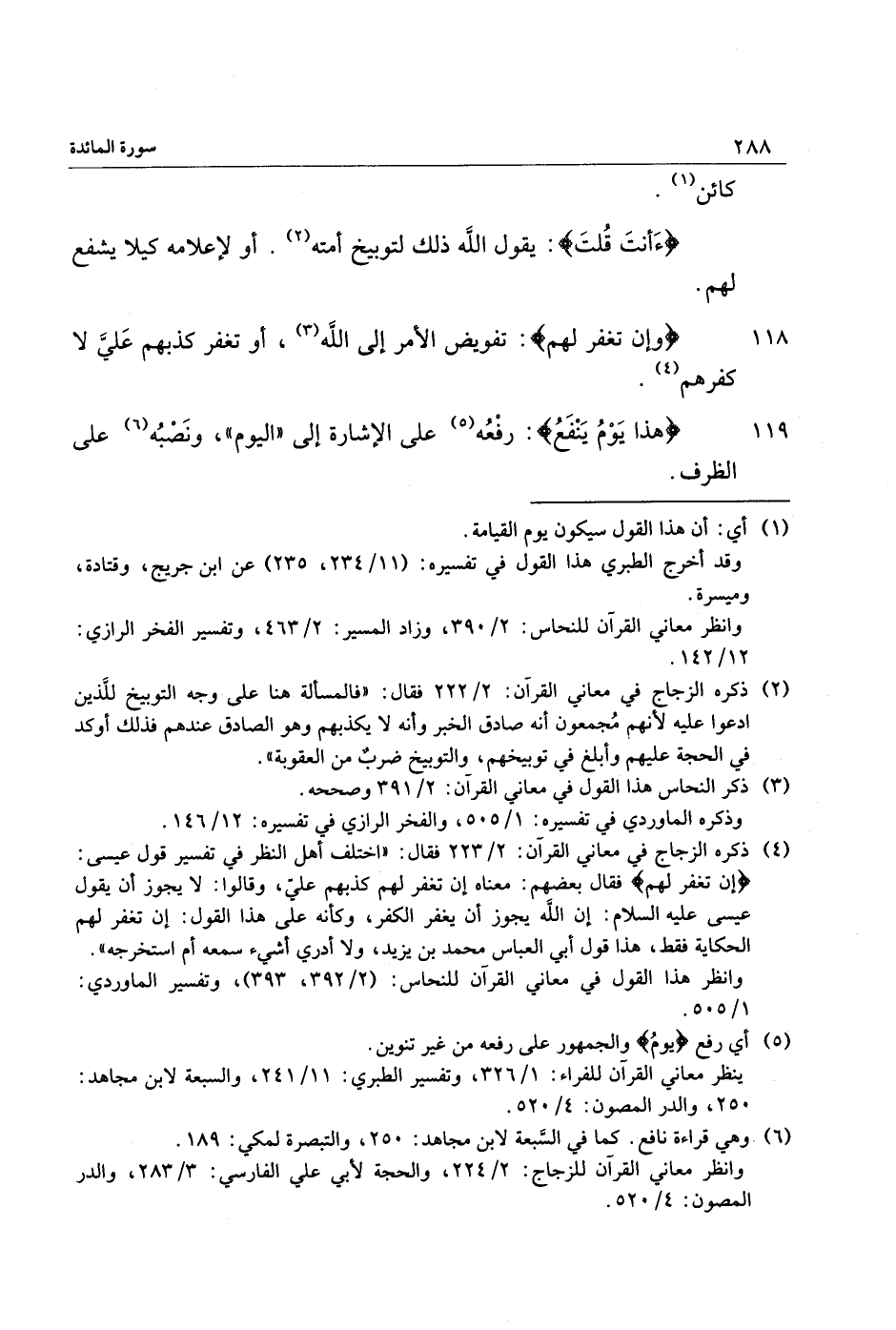 119 هذا يَوْمُ يَنْفَعُ: رفعه «5» على الإشارة إلى «اليوم» ، ونصبه «6» على الظرف.