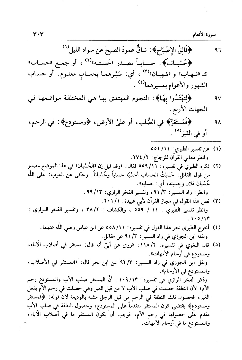 حُسْباناً: حسابا مصدر «حسبته» «2» ، أو جمع «حساب» ك «شهاب» و «شهبان» «3» ، أي: سيّرهما بحساب معلوم. أو حساب الشهور والأعوام بمسيرهما «4» .