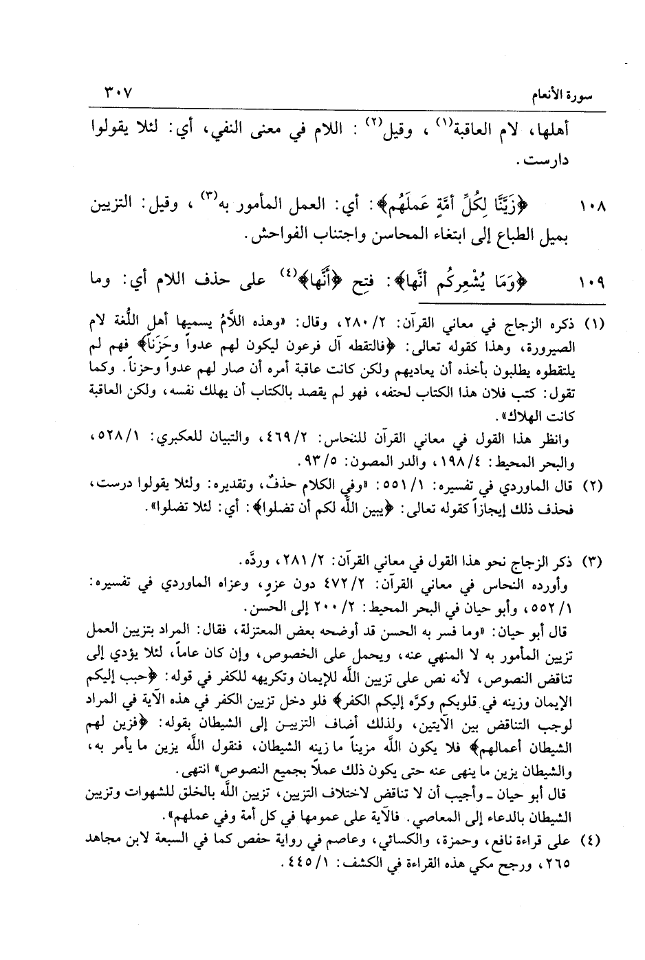 108 زَيَّنَّا لِكُلِّ أُمَّةٍ عَمَلَهُمْ: أي: العمل المأمور به «3» ، وقيل: التزيين بميل الطباع إلى ابتغاء المحاسن واجتناب الفواحش.