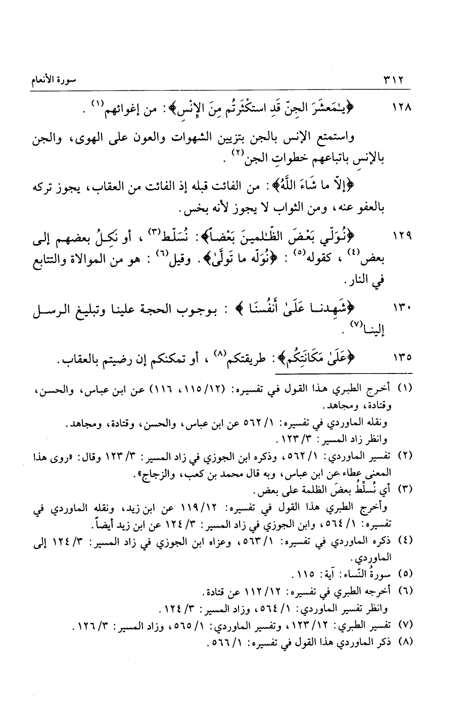 129 نُوَلِّي بَعْضَ الظَّالِمِينَ بَعْضاً: نسلّط «3» ، أو نكل بعضهم إلى بعض «4» ، كقوله «5» : نُوَلِّهِ ما تَوَلَّى. وقيل «6» : هو من الموالاة والتتابع في النار.