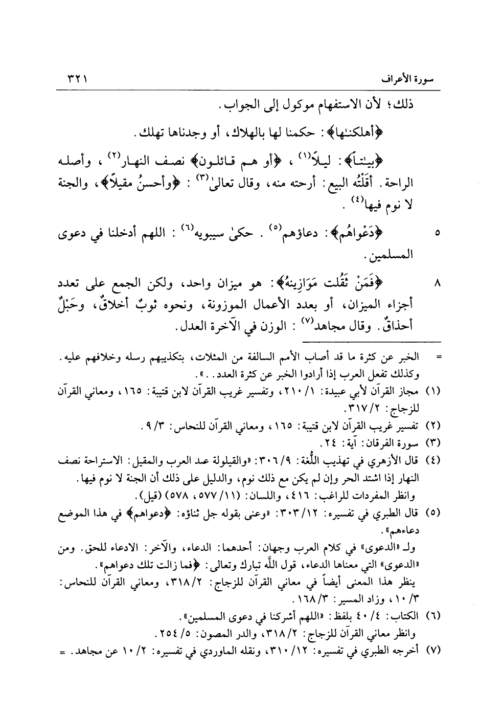 (7) أخرجه الطبري في تفسيره: 12/ 310، ونقله الماوردي في تفسيره: 2/ 10 عن مجاهد. -