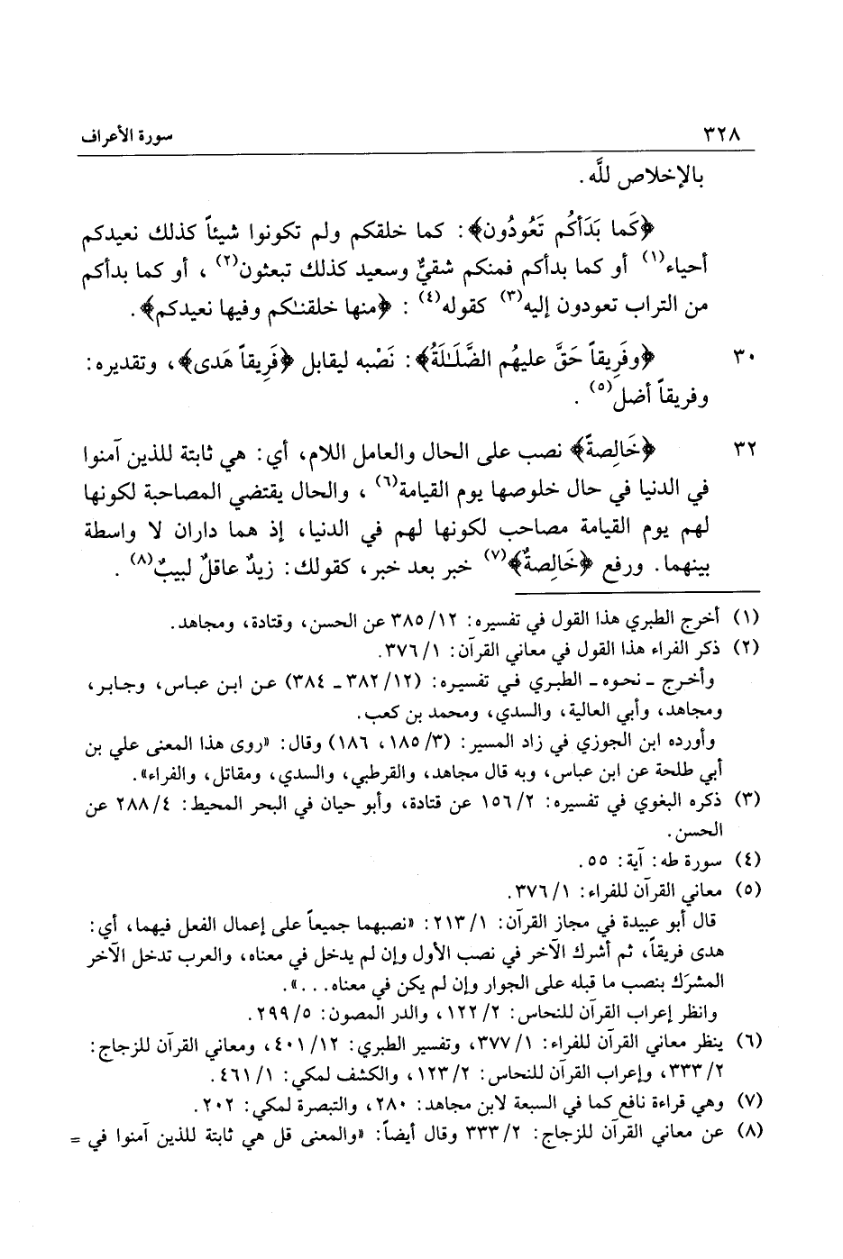 (8) عن معاني القرآن للزجاج: 2/ 333 وقال أيضا: «والمعنى قل هي ثابتة للذين آمنوا في-- الحياة الدنيا خالصة يوم القيامة» .