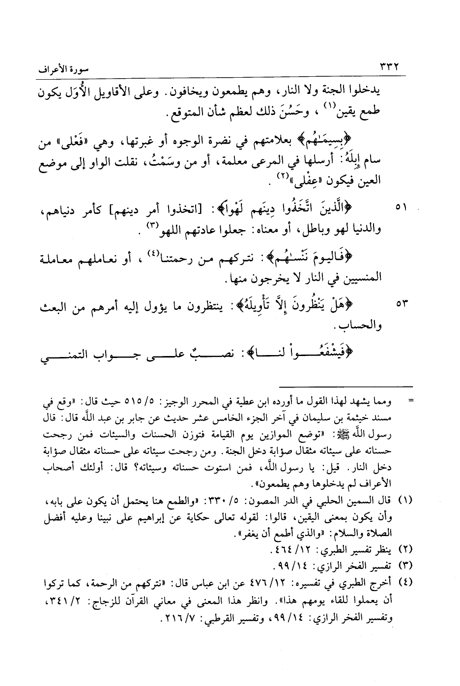 (1) قال السمين الحلبي في الدر المصون: 5/ 330: «والطمع هنا يحتمل أن يكون على بابه، وأن يكون بمعنى اليقين، قالوا: لقوله تعالى حكاية عن إبراهيم على نبينا وعليه أفضل الصلاة والسلام: «والذي أطمع أن يغفر» . [.....]