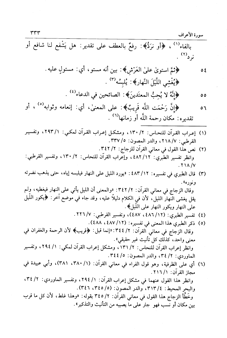 56 إِنَّ رَحْمَتَ اللَّهِ قَرِيبٌ: على المعنى، أي: إنعامه وثوابه «5» ، أو تقديره: مكان رحمة الله أو زمانها «6» .