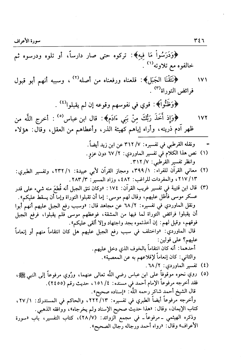 171 نَتَقْنَا الْجَبَلَ: قلعناه ورفعناه من أصله «2» ، وسببه أنهم أبو قبول فرائض التوراة «3» .