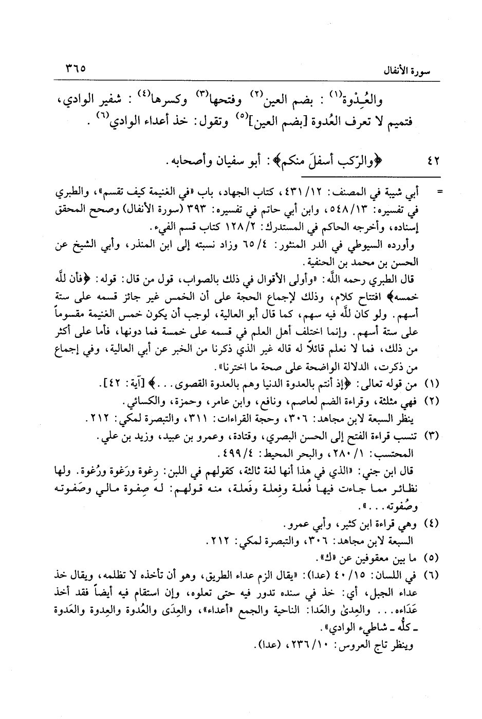 (1) من قوله تعالى: إِذْ أَنْتُمْ بِالْعُدْوَةِ الدُّنْيا وَهُمْ بِالْعُدْوَةِ الْقُصْوى ... [آية: 42] .