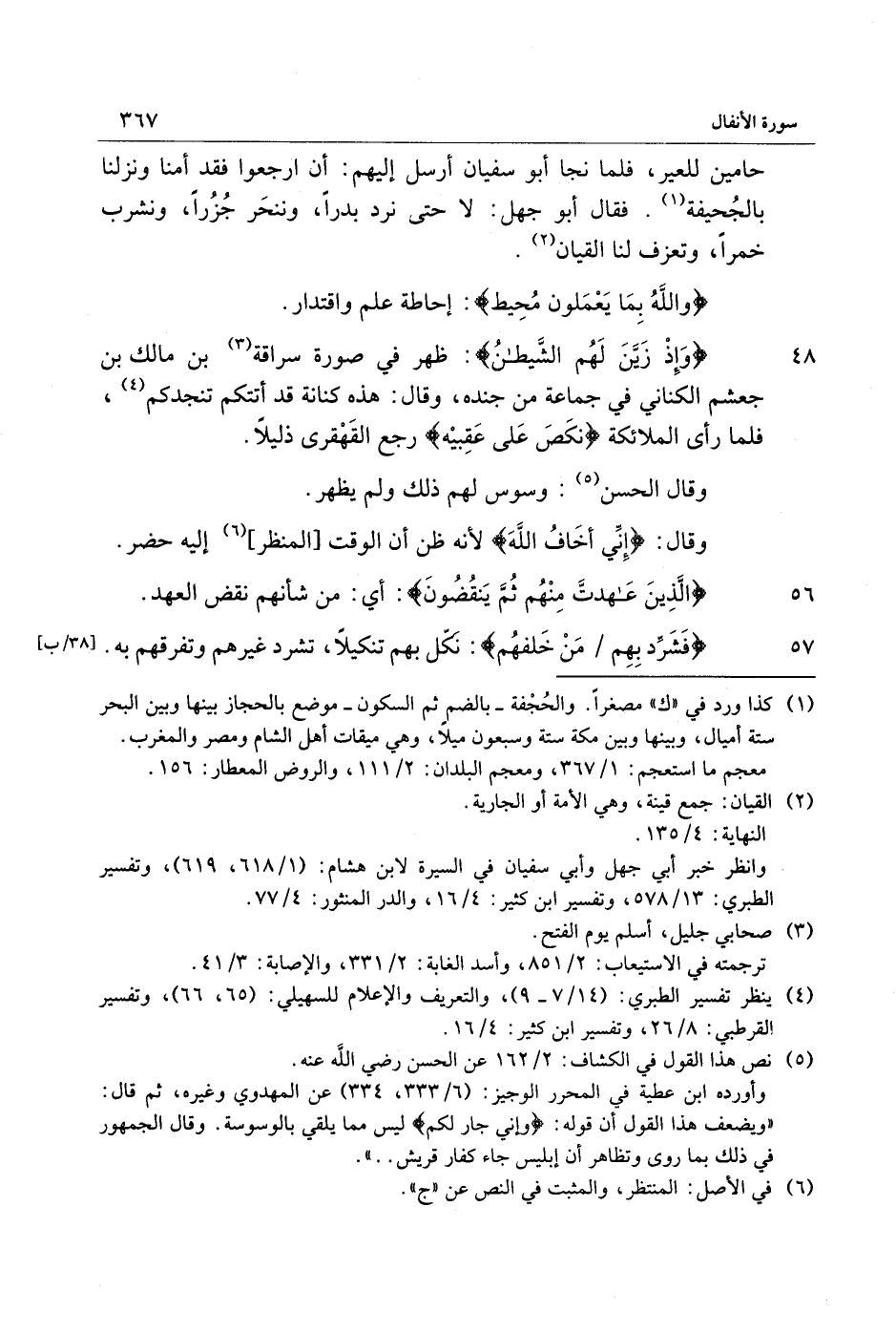 وانظر خبر أبي جهل وأبي سفيان في السيرة لابن هشام: (1/ 618، 619) ، وتفسير الطبري: 13/ 578، وتفسير ابن كثير: 4/ 16، والدر المنثور: 4/ 77.