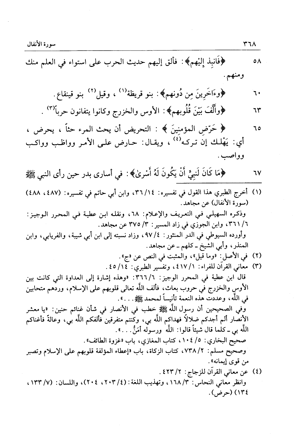 (1) أخرج الطبري هذا القول في تفسيره: 14/ 36، وابن أبي حاتم في تفسيره: (487، 488) (سورة الأنفال) عن مجاهد.