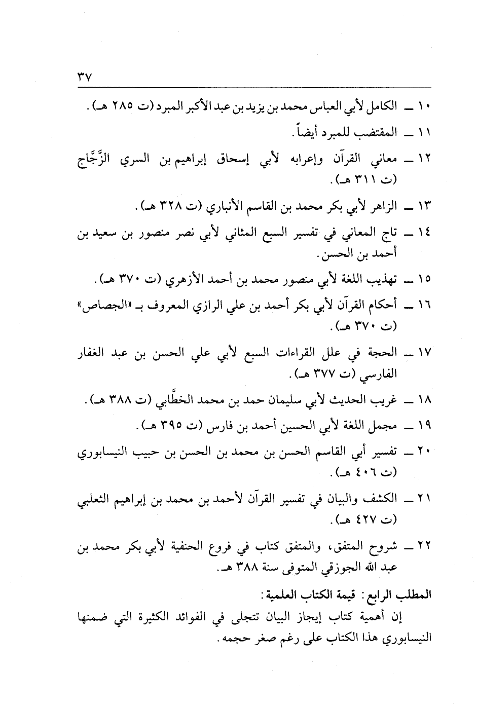 إن أهمية كتاب إيجاز البيان تتجلى في الفوائد الكثيرة التي ضمنها النيسابوري هذا الكتاب على رغم صغر حجمه.