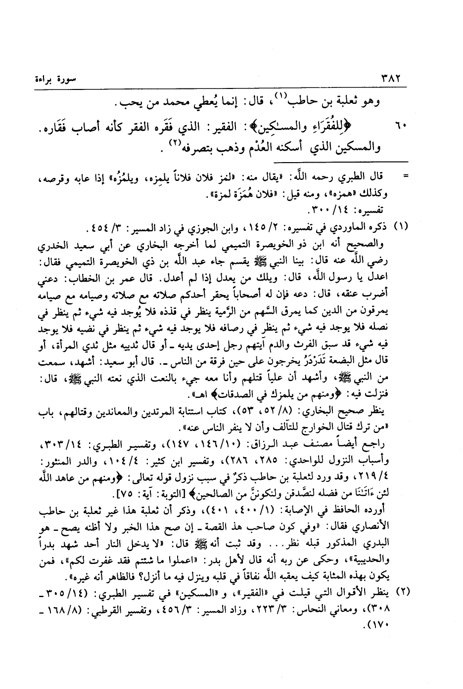 (2) ينظر الأقوال التي قيلت في «الفقير» ، و «المسكين» في تفسير الطبري: (14/ 305- 308) ، ومعاني النحاس: 3/ 223، وزاد المسير: 3/ 456، وتفسير القرطبي: (8/ 168- 170) .