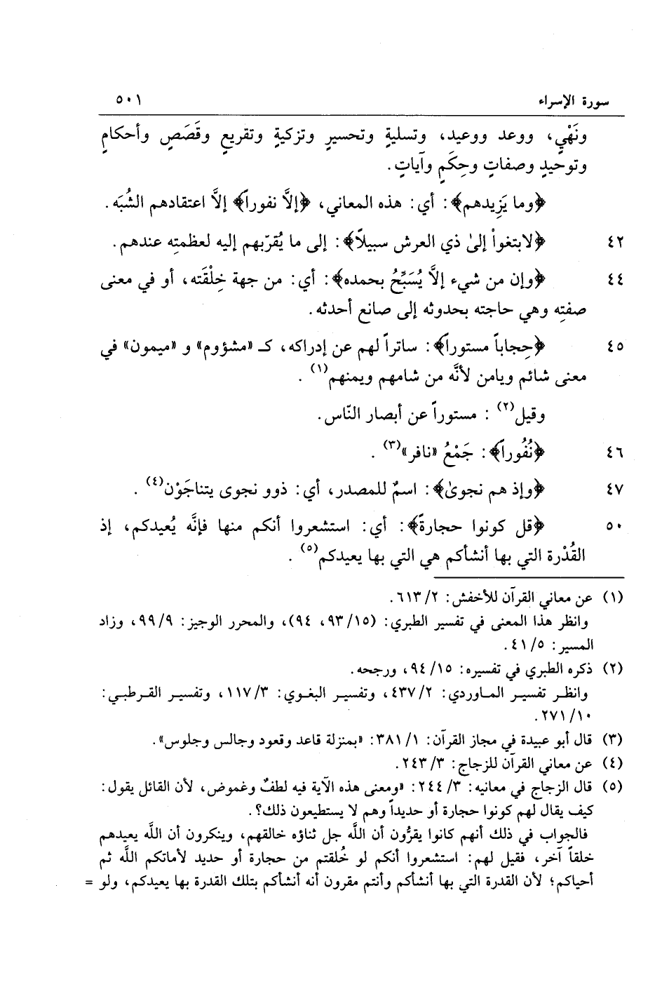 وانظر هذا المعنى في تفسير الطبري: (15/ 93، 94) ، والمحرر الوجيز: 9/ 99، وزاد المسير: 5/ 41.