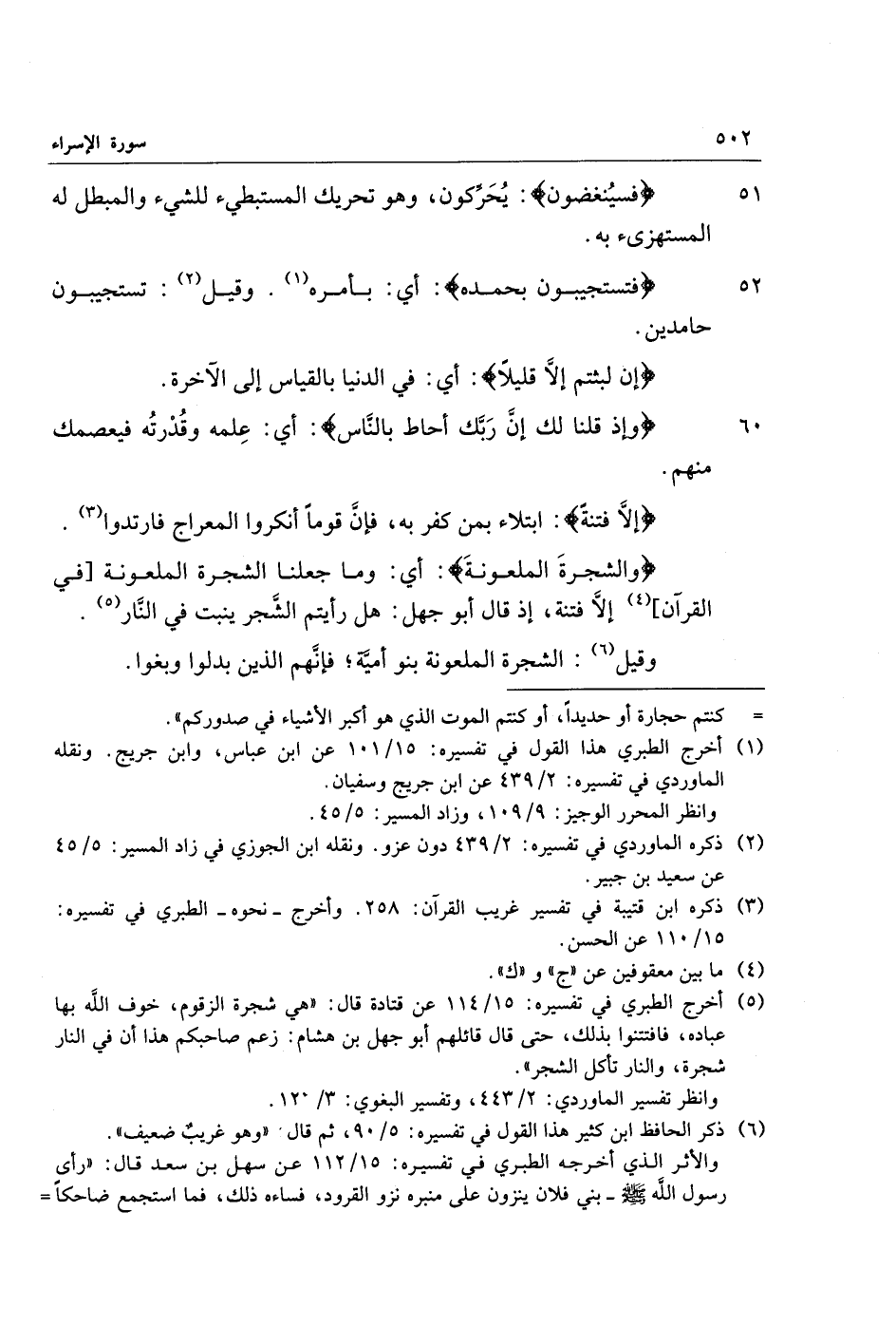 (5) أخرج الطبري في تفسيره: 15/ 114 عن قتادة قال: «هي شجرة الزقوم، خوف الله بها عباده، فافتنوا بذلك، حتى قال قائلهم أبو جهل بن هشام: زعم صاحبكم هذا أن في النار شجرة، والنار تأكل الشجر» .