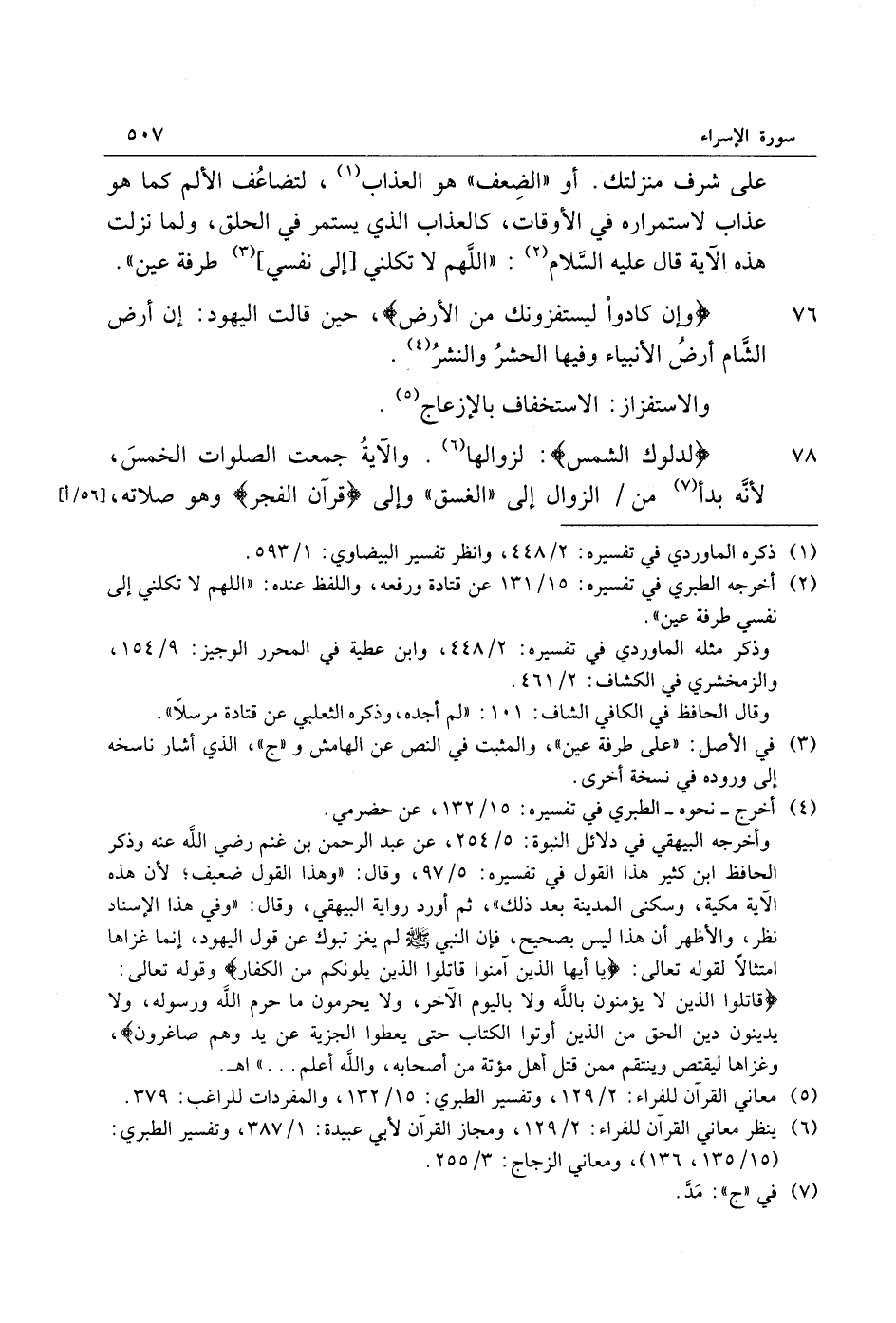 78 لِدُلُوكِ الشَّمْسِ: لزوالها «6» . والآية جمعت الصلوات الخمس، لأنّه بدأ «7» من/ الزوال إلى «الغسق» وإلى قُرْآنَ الْفَجْرِ وهو صلاته، [56/ أ]