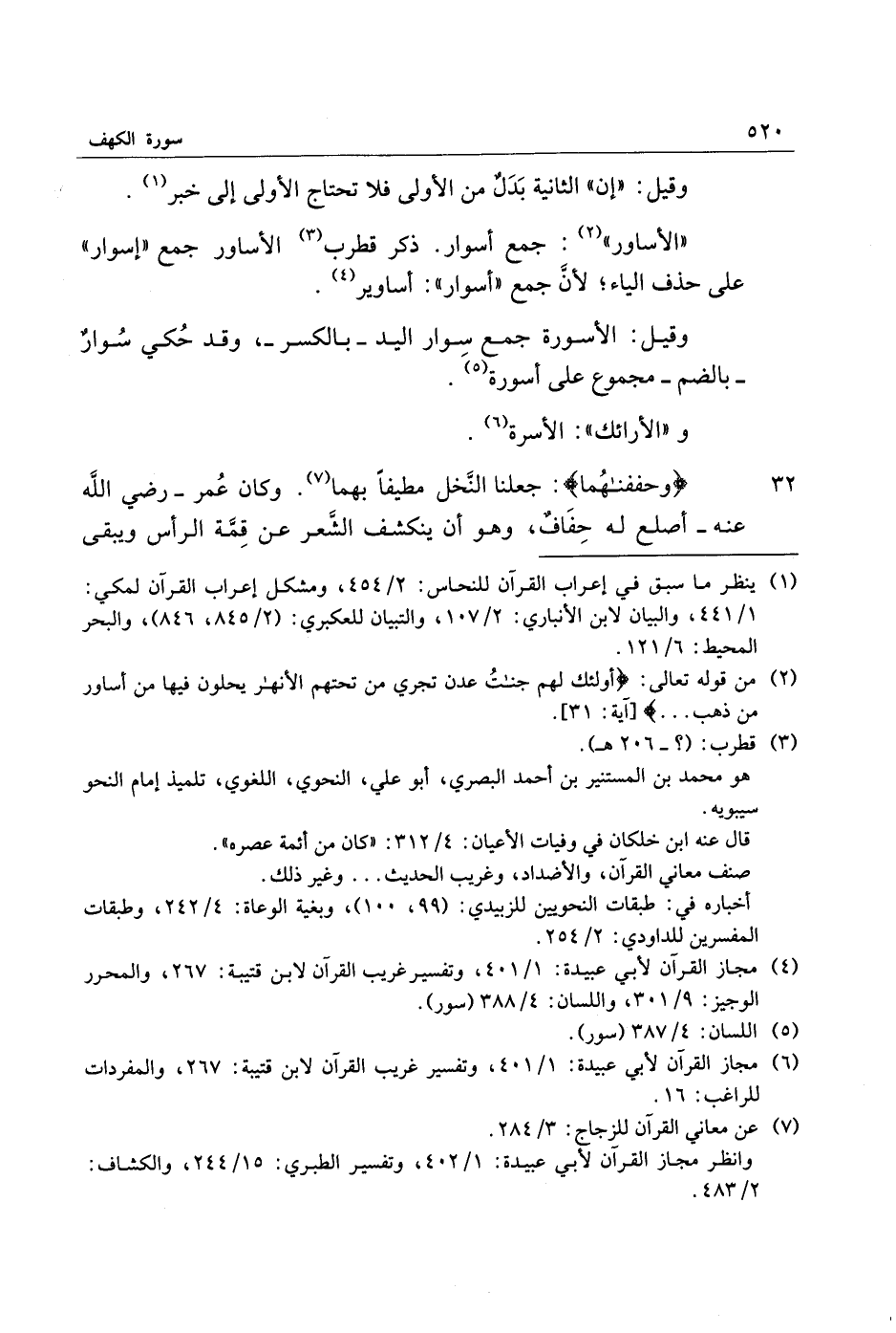 (1) ينظر ما سبق في إعراب القرآن للنحاس: 2/ 454، ومشكل إعراب القرآن لمكي: