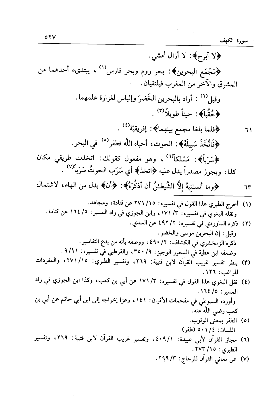 (6) مجاز القرآن لأبي عبيدة: 1/ 409، وتفسير غريب القرآن لابن قتيبة: 269، وتفسير الطبري: 15/ 273.