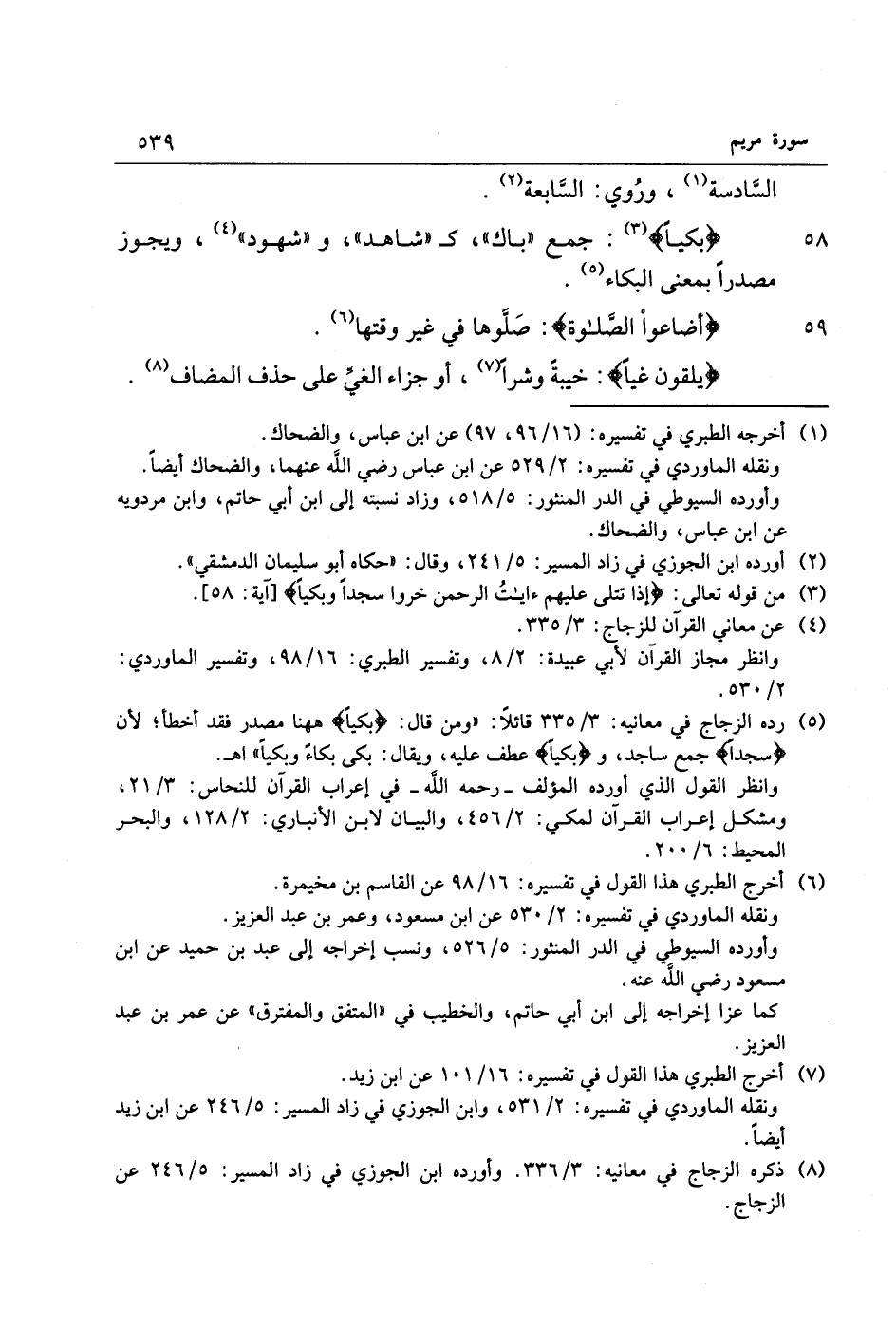 58 بُكِيًّا «3» : جمع «باك» ، ك «شاهد» ، و «شهود» «4» ، ويجوز مصدرا بمعنى البكاء «5» .