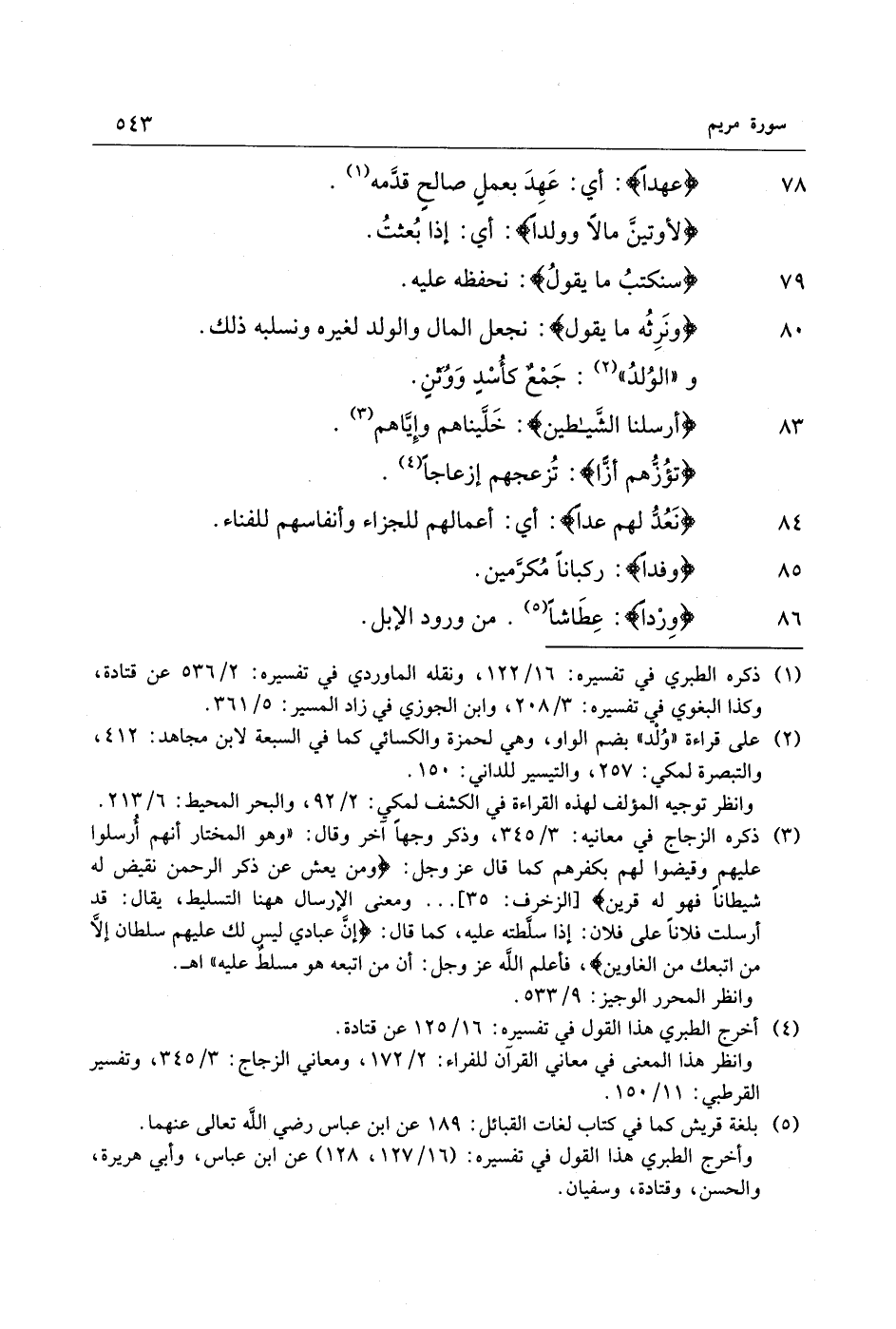 (1) ذكره الطبري في تفسيره: 16/ 122، ونقله الماوردي في تفسيره: 2/ 536 عن قتادة، وكذا البغوي في تفسيره: 3/ 208، وابن الجوزي في زاد المسير: 5/ 361.