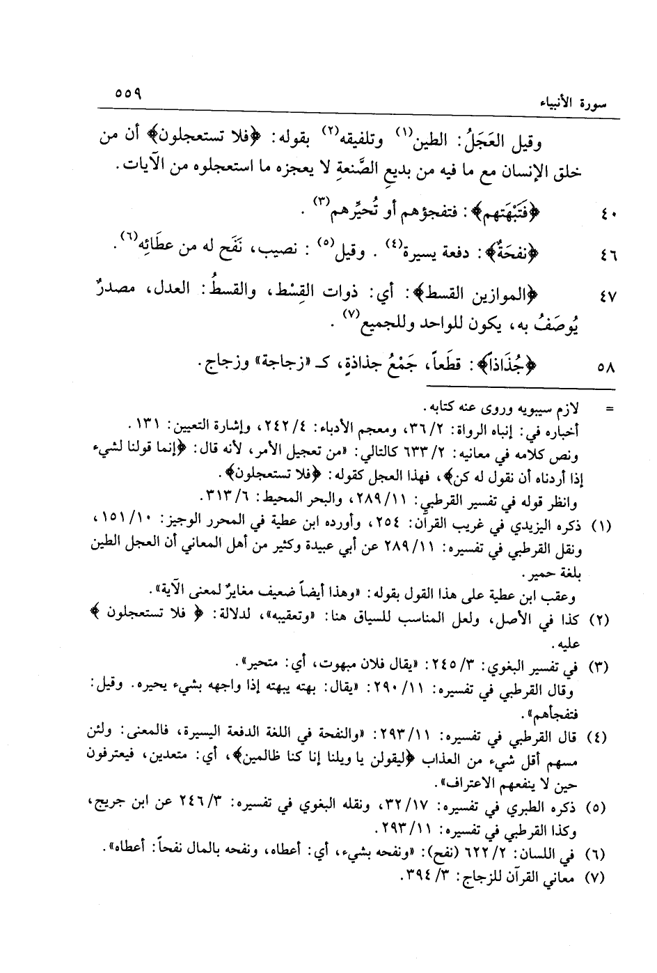 (5) ذكره الطبري في تفسيره: 17/ 32، ونقله البغوي في تفسيره: 3/ 246 عن ابن جريج، وكذا القرطبي في تفسيره: 11/ 293.