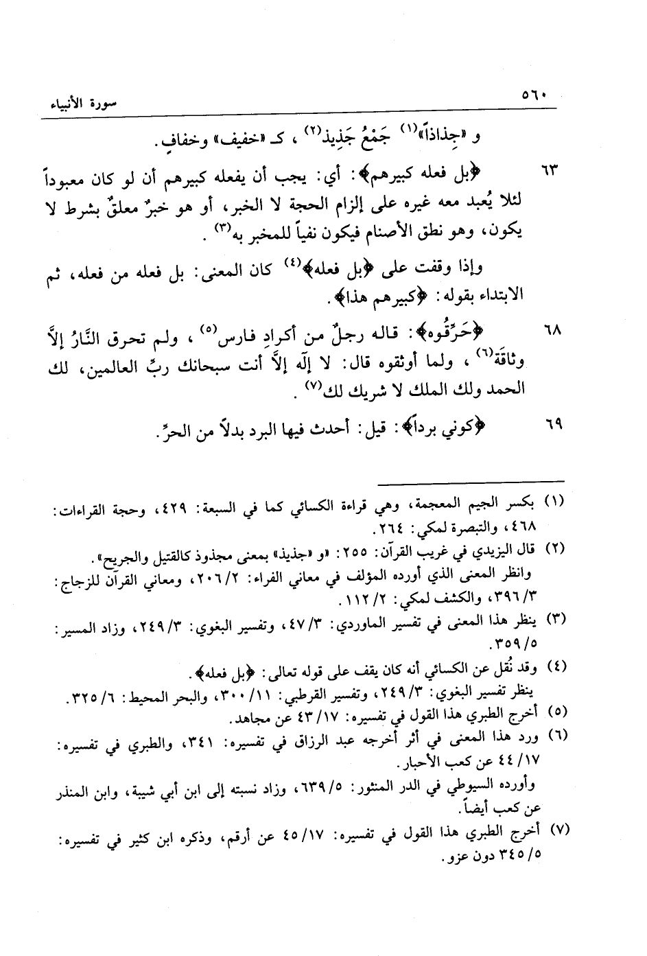 68 حَرِّقُوهُ: قاله رجل من أكراد فارس «5» ، ولم تحرق النّار إلّا وثاقة «6» ، ولما أوثقوه قال: لا إله إلّا أنت سبحانك ربّ العالمين، لك الحمد ولك الملك لا شريك لك «7» .