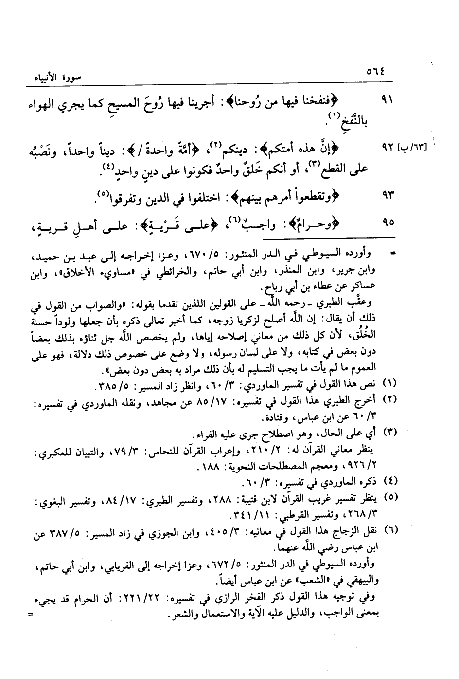 [63/ ب] 92 إِنَّ هذِهِ أُمَّتُكُمْ: دينكم «2» ، أُمَّةً واحِدَةً: دينا واحدا، ونصبه على القطع «3» ، أو أنكم خلق واحد فكونوا على دين واحد «4» .