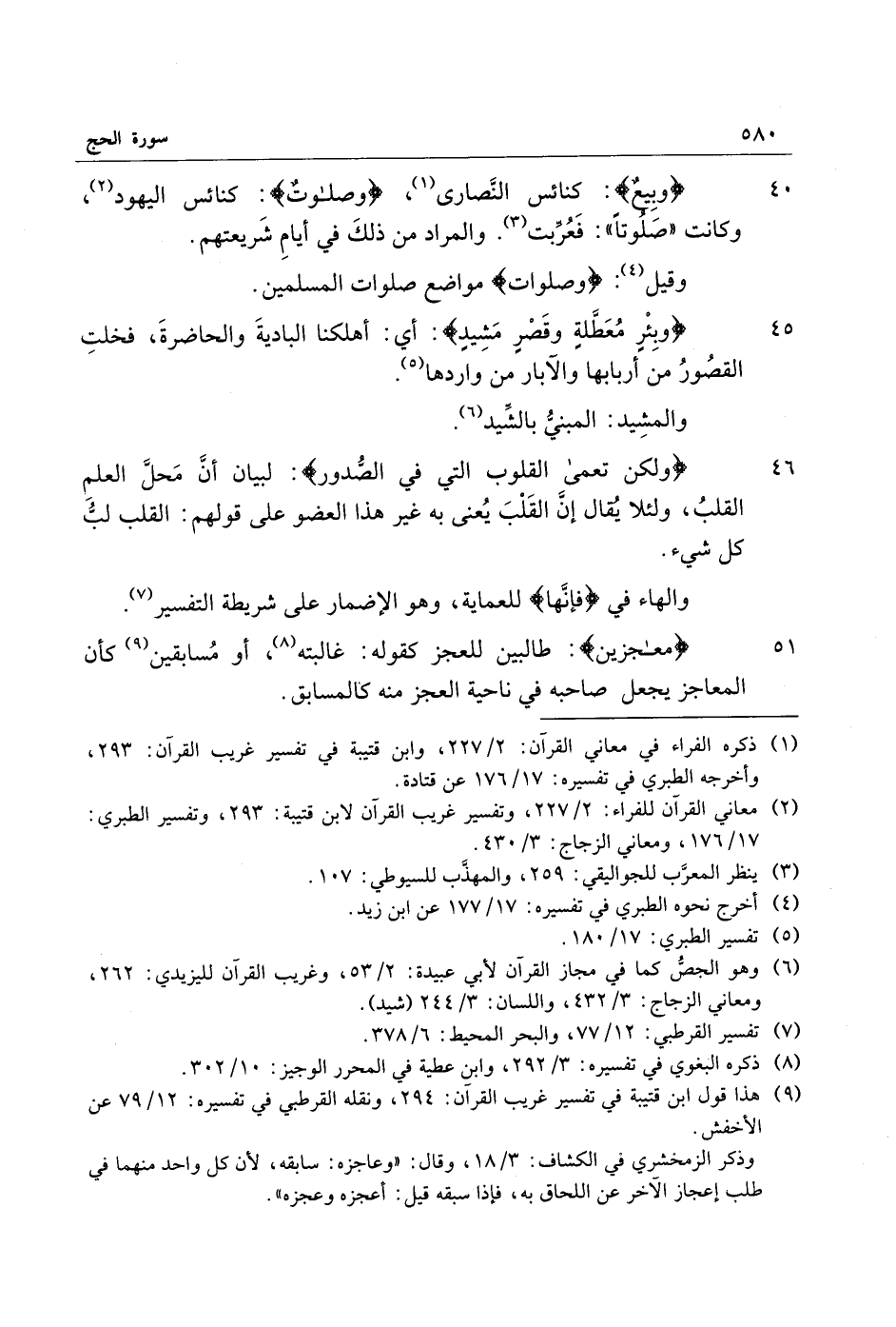 46 وَلكِنْ تَعْمَى الْقُلُوبُ الَّتِي فِي الصُّدُورِ: لبيان أنّ محلّ العلم القلب، ولئلا يقال إنّ القلب يعنى به غير هذا العضو على قولهم: القلب لبّ كل شيء.