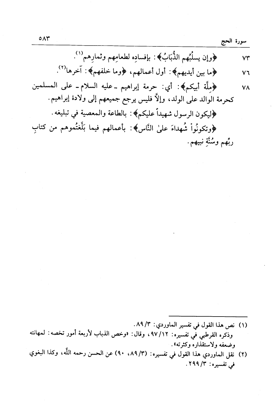 78 مِلَّةَ أَبِيكُمْ: أي: حرمة إبراهيم- عليه السلام- على المسلمين كحرمة الوالد على الولد، وإلّا فليس يرجع جميعهم إلى ولادة إبراهيم.