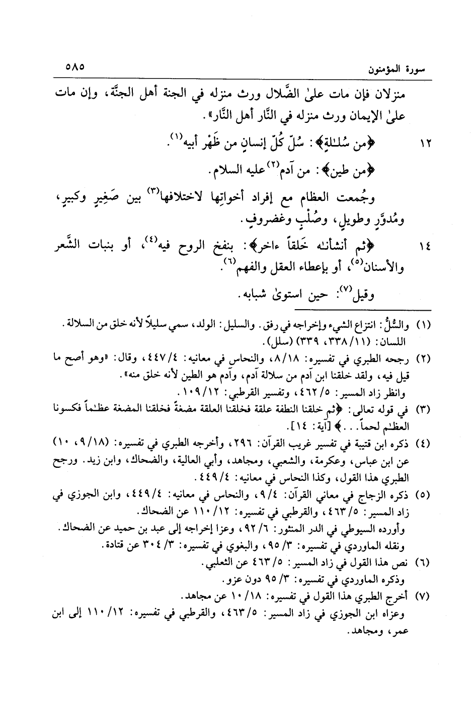 (2) رجحه الطبري في تفسيره: 18/ 8، والنحاس في معانيه: 4/ 447، وقال: «وهو أصح ما قيل فيه، ولقد خلقنا ابن آدم من سلالة آدم، وآدم هو الطين لأنه خلق منه» .