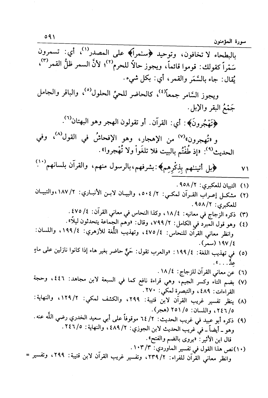 و «تهجرون» «7» من الإهجار، وهو الإفحاش في القول «8» ، وفي الحديث «9» : «إذ طفتم بالبيت فلا تلغوا ولا تهجروا» .