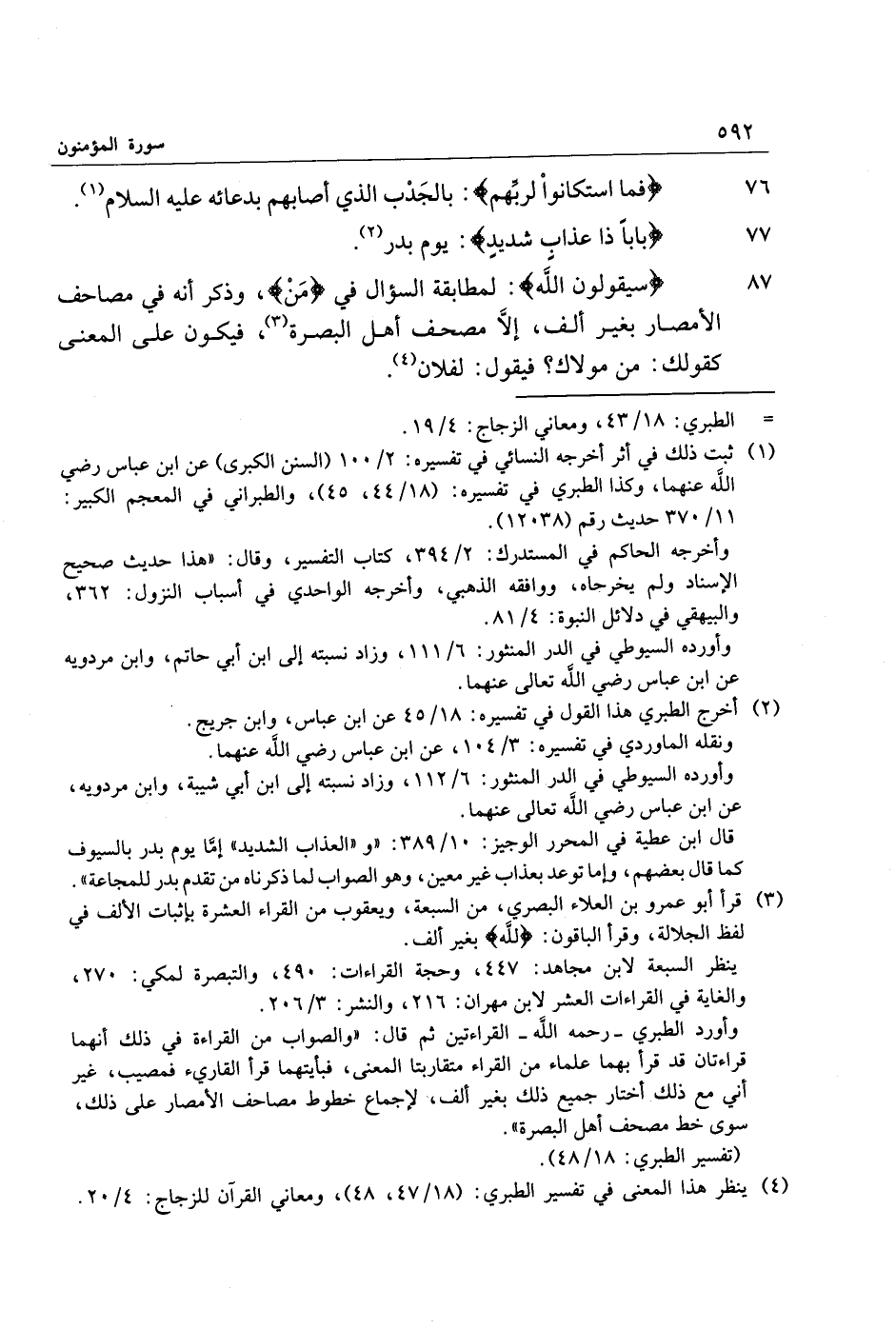 (4) ينظر هذا المعنى في تفسير الطبري: (18/ 47، 48) ، ومعاني القرآن للزجاج: 4/ 20.