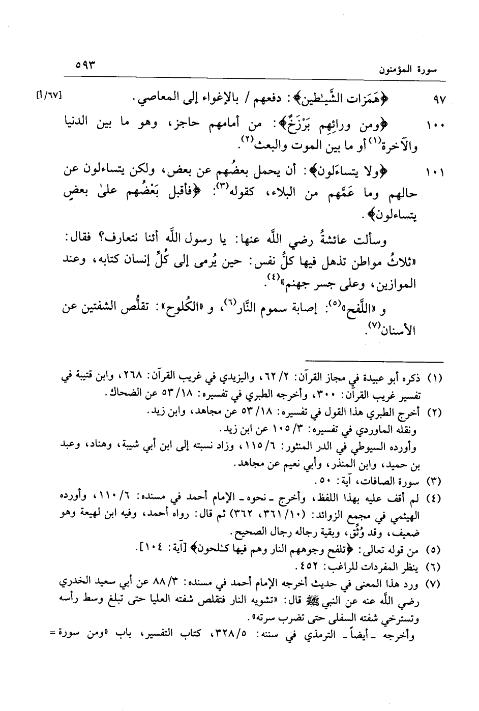 وأخرجه- أيضا- الترمذي في سننه: 5/ 328، كتاب التفسير، باب «ومن سورة المؤمنون» ، وقال: «هذا حديث حسن صحيح غريب» .