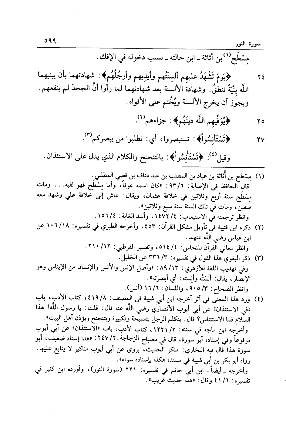 وأخرجه- أيضا- ابن أبي حاتم في تفسيره: 221 (سورة النور) ، وأورده ابن كثير في تفسيره: 6/ 41 وقال: «هذا حديث غريب» .