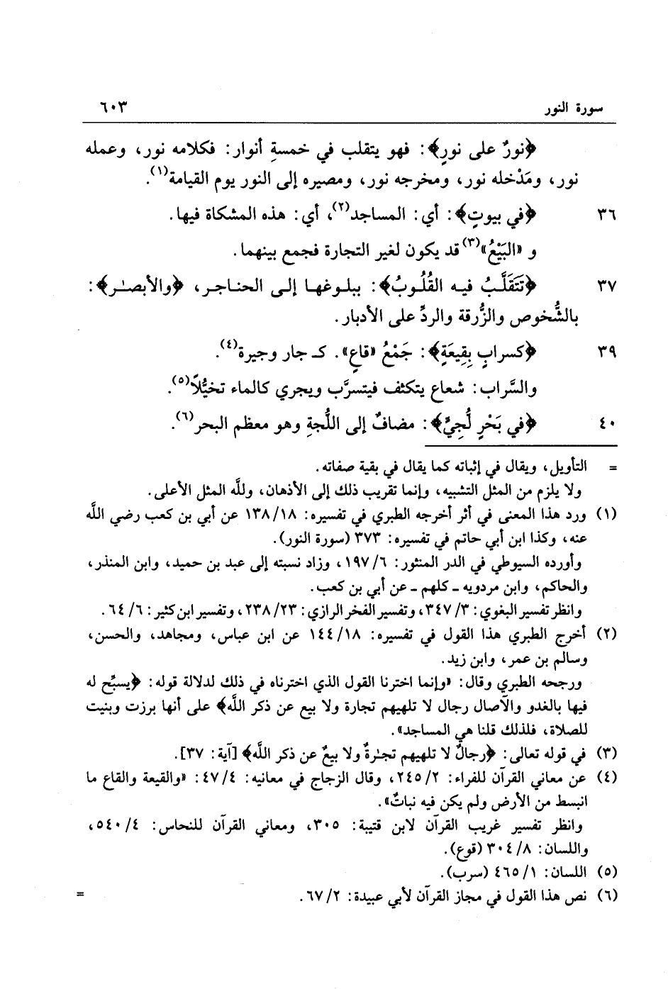(1) ورد هذا المعنى في أثر أخرجه الطبري في تفسيره: 18/ 138 عن أبي بن كعب رضي الله عنه، وكذا ابن أبي حاتم في تفسيره: 373 (سورة النور) .