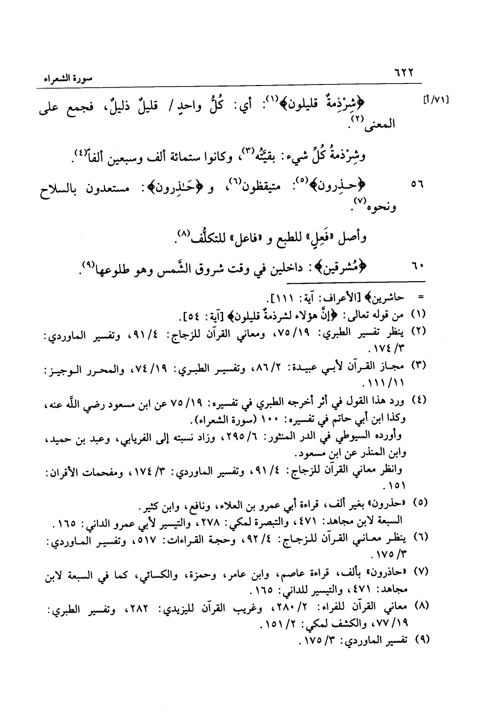 [71/ أ] لَشِرْذِمَةٌ قَلِيلُونَ «1» : أي: كلّ واحد/ قليل ذليل، فجمع على المعنى «2» .