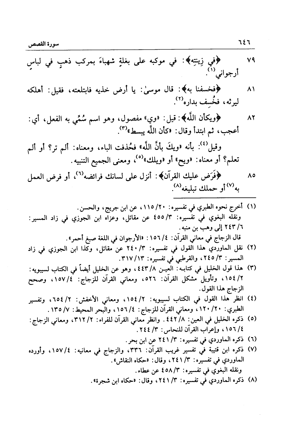 81 فَخَسَفْنا بِهِ: قال موسى: يا أرض خذيه فابتلعته، فقيل: أهلكه ليرثه، فخسف بداره «2» .