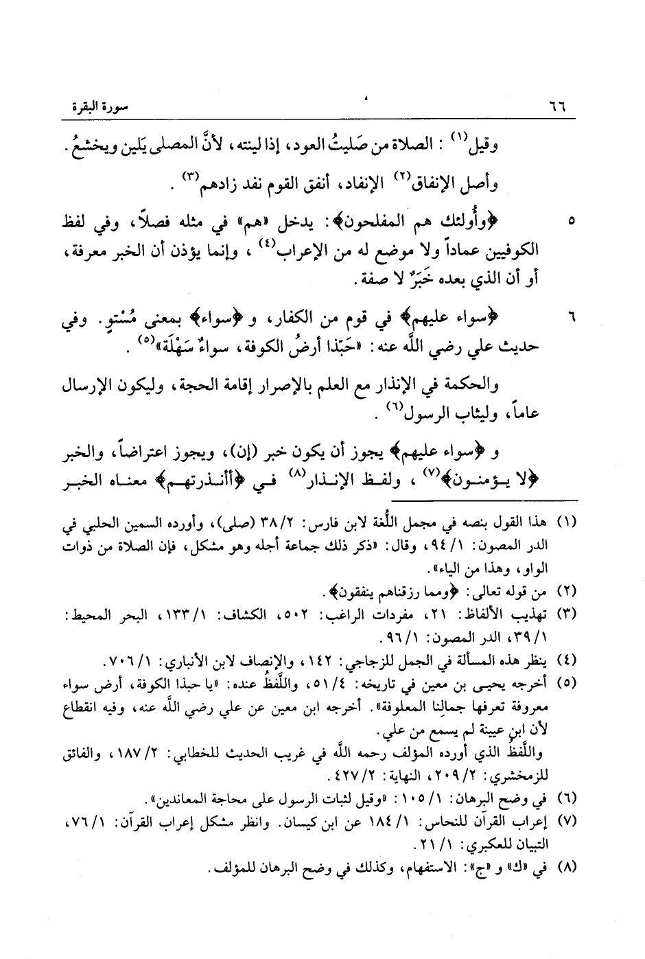 (7) إعراب القرآن للنحاس: 1/ 184، عن ابن كيسان. وانظر مشكل إعراب القرآن: 1/ 76، التبيان للعكبري: 1/ 21.