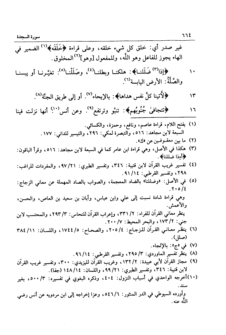 16 تَتَجافى جُنُوبُهُمْ: تنبو وترتفع «9» . وعن أنس «10» : أنها نزلت فينا