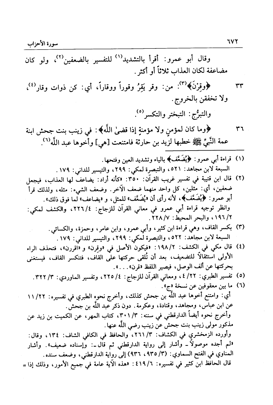 (2) قال ابن قتيبة في تفسير غريب القرآن: 350: «كأنه أراد: يضاعف لها العذاب، فيجعل ضعفين، أي: مثلين، كل واحد منهما ضعف الآخر. وضعف الشيء: مثله، ولذلك قرأ أبو عمرو: يضعّف، لأنه رأى أن «يضعّف» للمثل، و «يضاعف» لما فوق ذلك» .