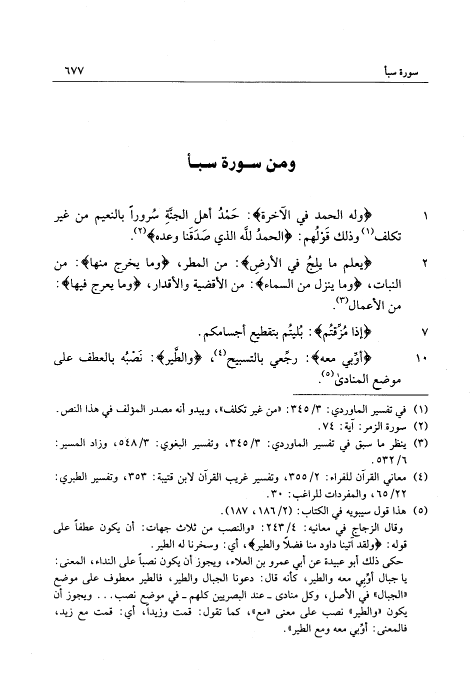 وقال الزجاج في معانيه: 4/ 243: «والنصب من ثلاث جهات: أن يكون عطفا على قوله: وَلَقَدْ آتَيْنا داوُدَ مِنَّا فَضْلًا ... وَالطَّيْرَ، أي: وسخرنا له الطير.