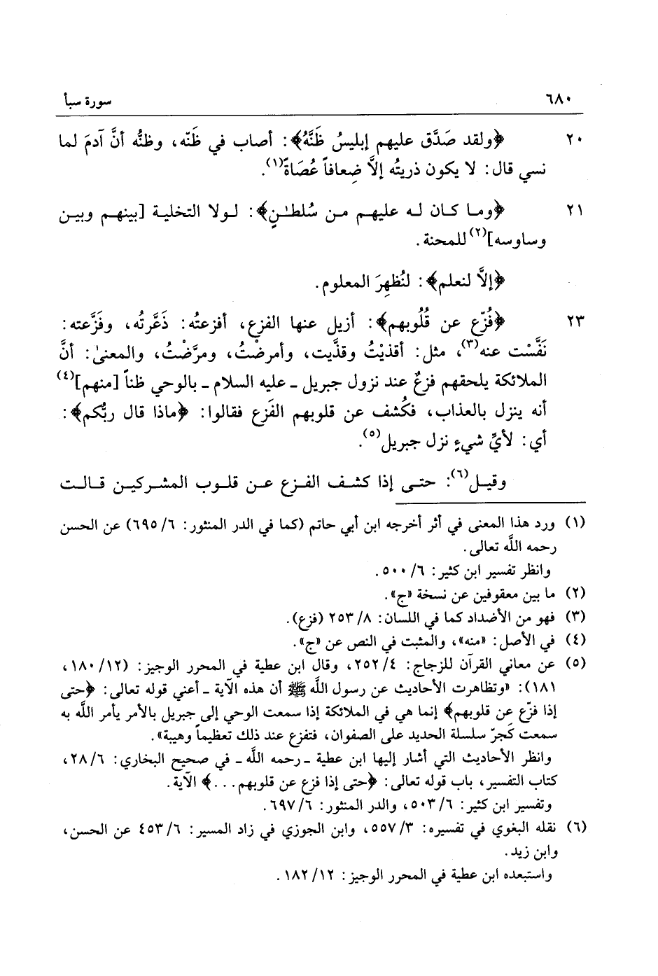 23 فُزِّعَ عَنْ قُلُوبِهِمْ: أزيل عنها الفزع، أفزعته: ذعّرته، وفزّعته: