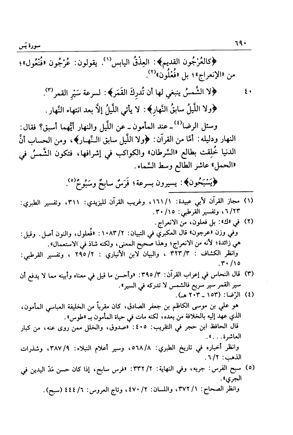 40 لَا الشَّمْسُ يَنْبَغِي لَها أَنْ تُدْرِكَ الْقَمَرَ: لسرعة سير القمر «3» .