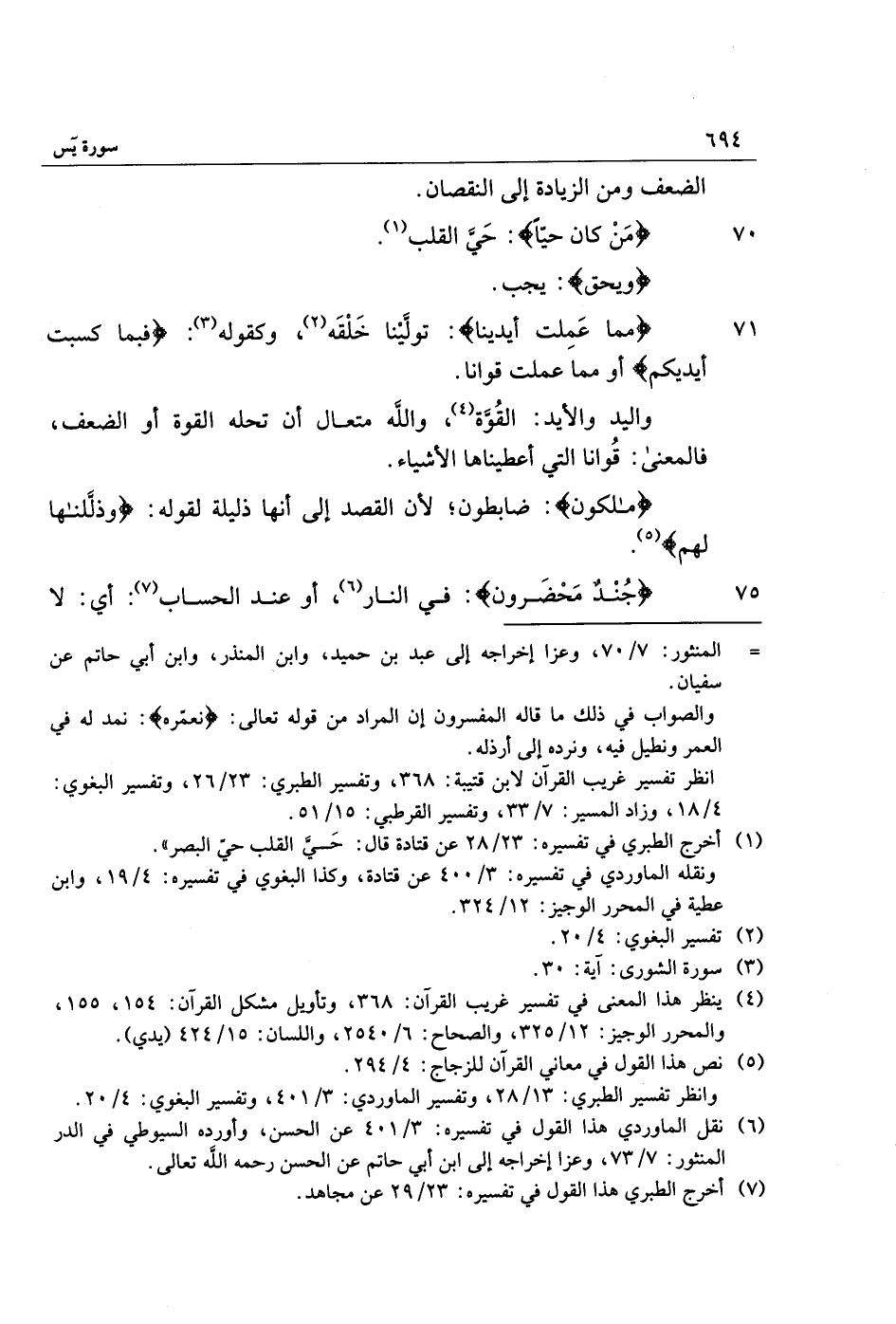 (1) أخرج الطبري في تفسيره: 23/ 28 عن قتادة قال: حيّ القلب حيّ البصر» .