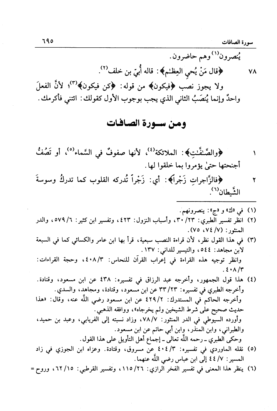 1 وَالصَّافَّاتِ: الملائكة «4» ، لأنها صفوف في السّماء «5» ، أو تصفّ أجنحتها حتى يؤمروا بما خلقوا لها.