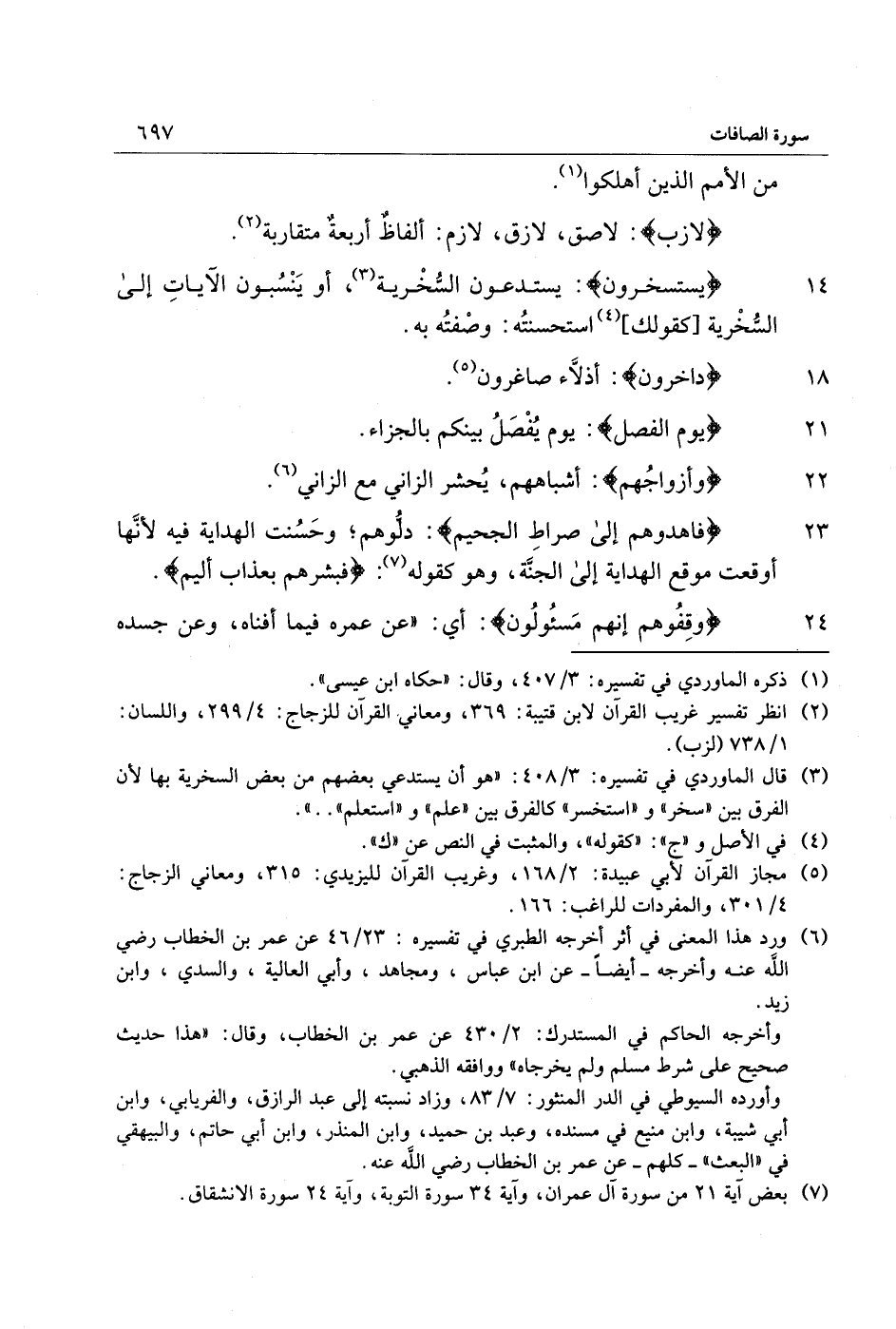 (6) ورد هذا المعنى في أثر أخرجه الطبري في تفسيره: 23/ 46 عن عمر بن الخطاب رضي الله عنه وأخرجه- أيضا- عن ابن عباس، ومجاهد، وأبي العالية، والسدي، وابن زيد.