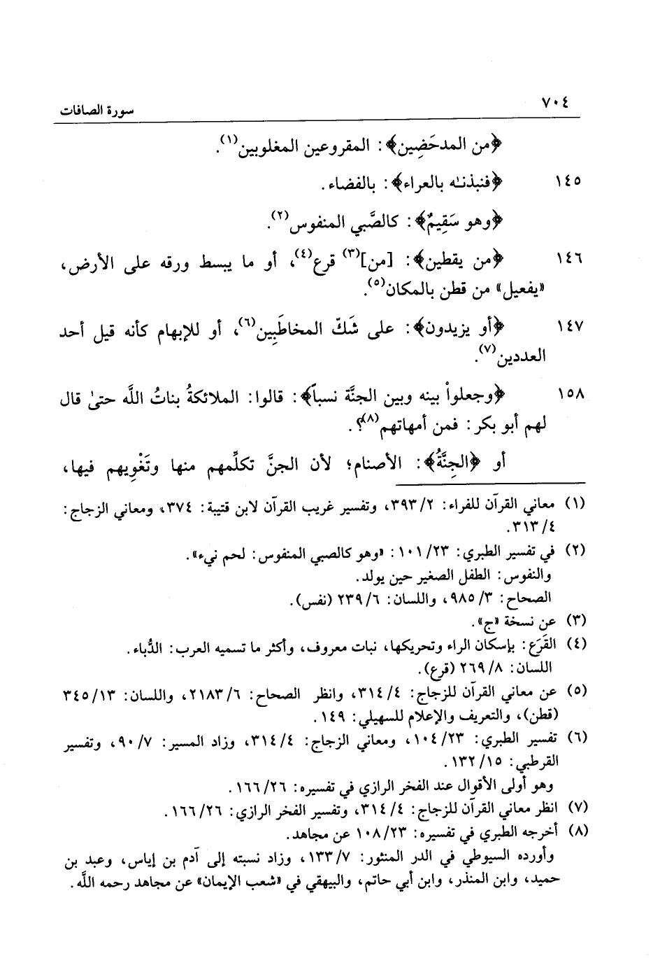 (6) تفسير الطبري: 23/ 104، ومعاني الزجاج: 4/ 314، وزاد المسير: 7/ 90، وتفسير القرطبي: 15/ 132.