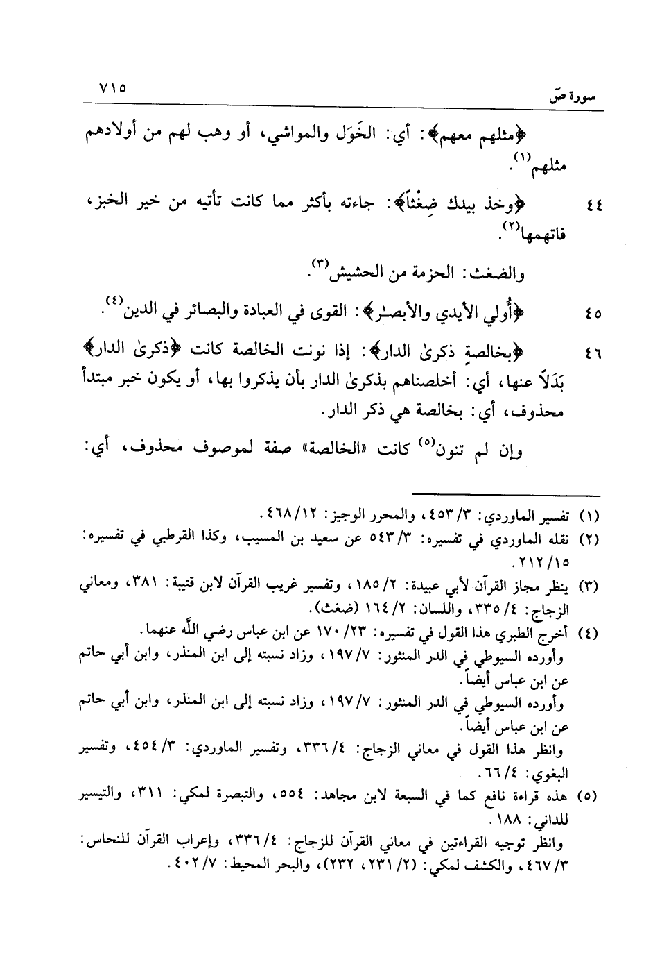 46 بِخالِصَةٍ ذِكْرَى الدَّارِ: إذا نونت الخالصة كانت ذِكْرَى الدَّارِ بدلا عنها، أي: أخلصناهم بذكرى الدار بأن يذكروا بها، أو يكون خبر مبتدأ محذوف، أي: بخالصة هي ذكر الدار.
