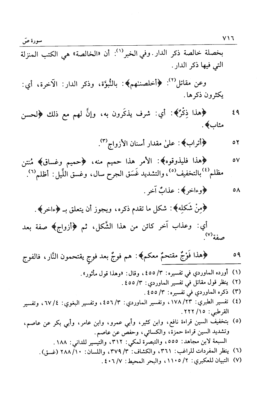 (4) تفسير الطبري: 23/ 178، وتفسير الماوردي: 3/ 456، وتفسير البغوي: 4/ 67، وتفسير القرطبي: 15/ 222.