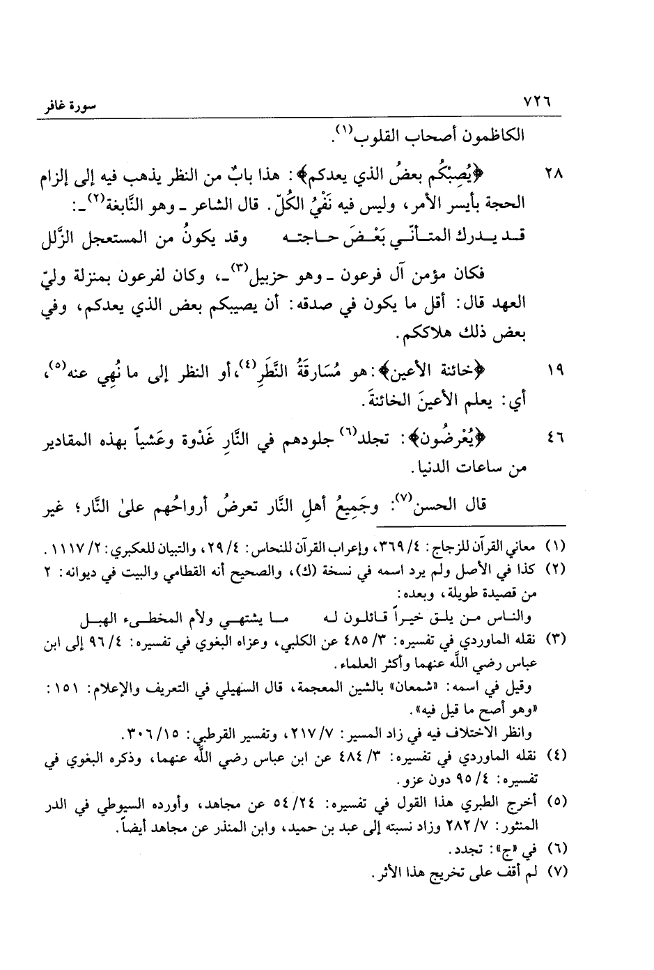 (5) أخرج الطبري هذا القول في تفسيره: 24/ 54 عن مجاهد، وأورده السيوطي في الدر المنثور: 7/ 282 وزاد نسبته إلى عبد بن حميد، وابن المنذر عن مجاهد أيضا.