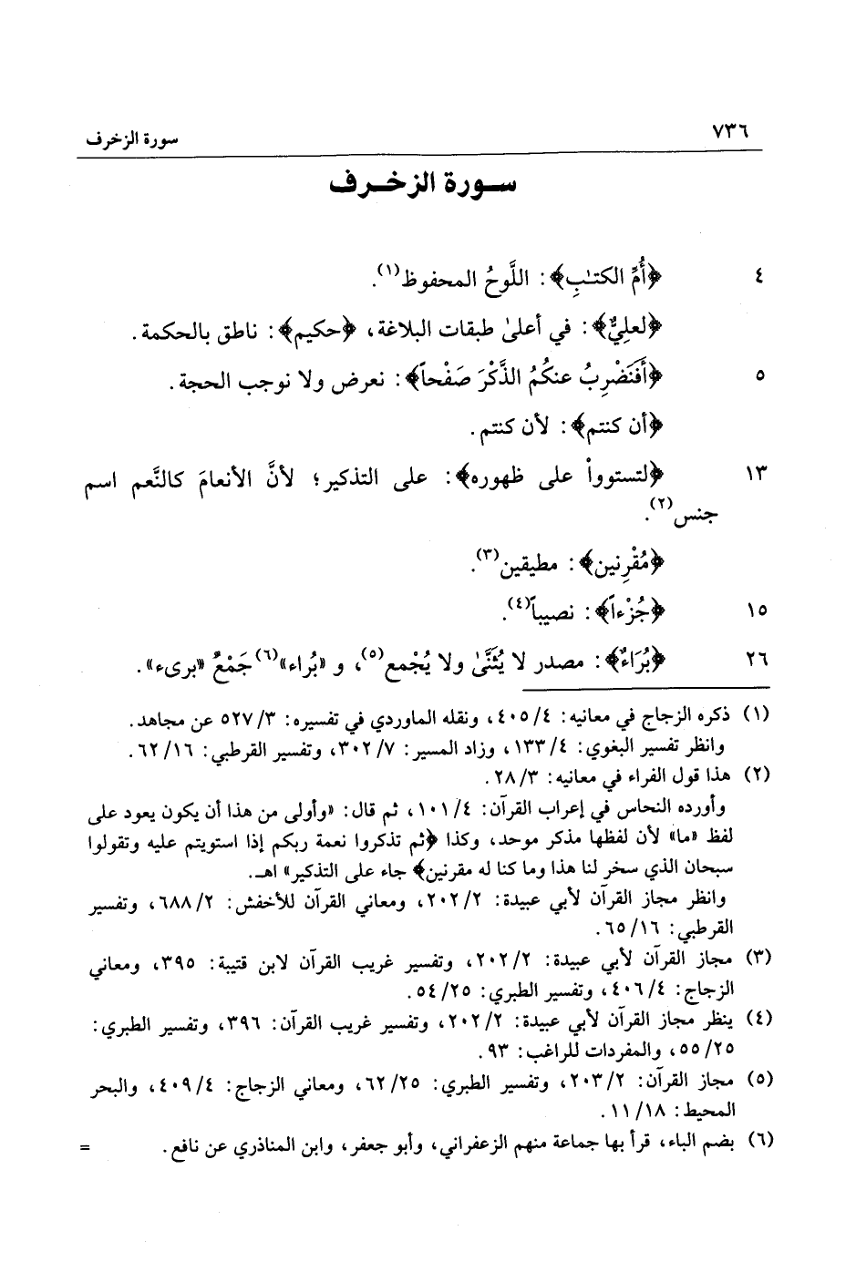(5) مجاز القرآن: 2/ 203، وتفسير الطبري: 25/ 62، ومعاني الزجاج: 4/ 409، والبحر المحيط: 18/ 11.