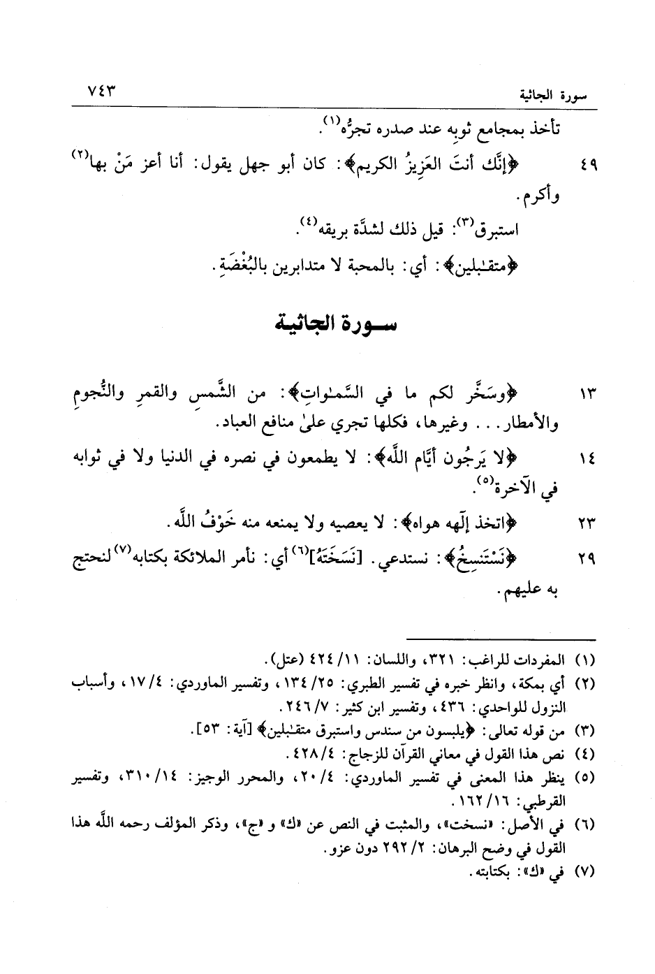 (5) ينظر هذا المعنى في تفسير الماوردي: 4/ 20، والمحرر الوجيز: 14/ 310، وتفسير القرطبي: 16/ 162.