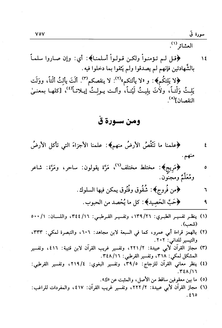(3) مجاز القرآن لأبي عبيدة: 2/ 221، وتفسير غريب القرآن لابن قتيبة: 416، وتفسير المشكل لمكي: 318، وتفسير القرطبي: 16/ 348.